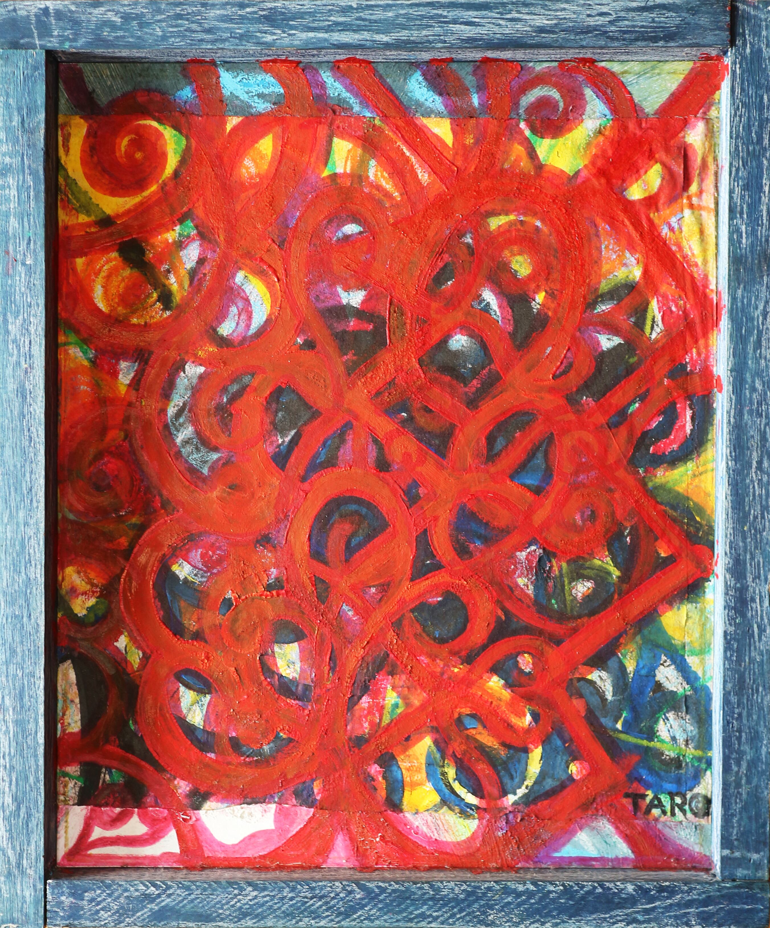全身全霊で描いたものを板にバーン!と貼り付け、